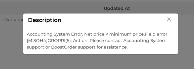 User can either decrease the value of minimum price, or increase the value of product unit price to resolve the error