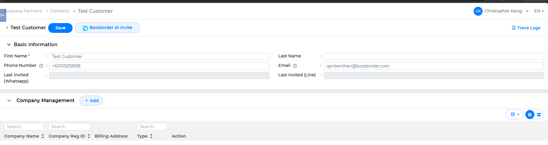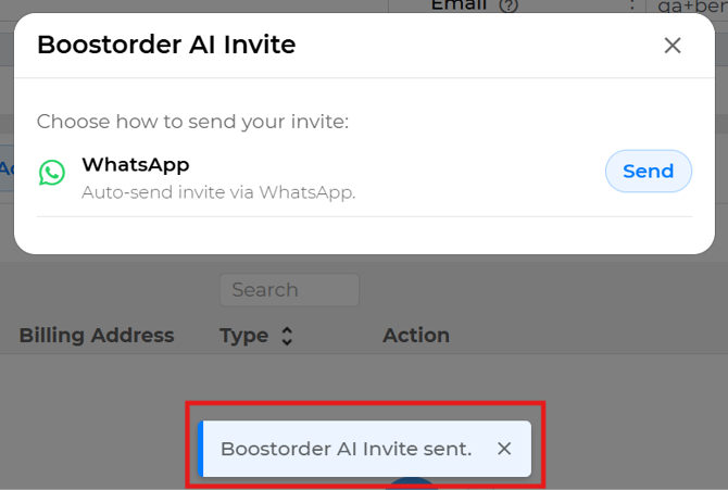 - Click the Boostorder AI Invite button.