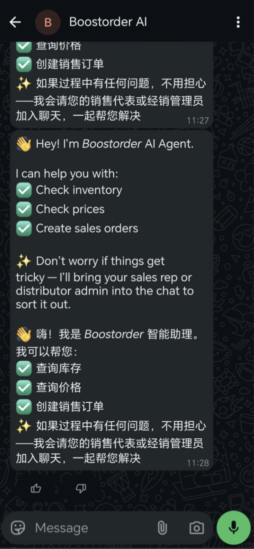 - The customer will receive this message in Whatsapp