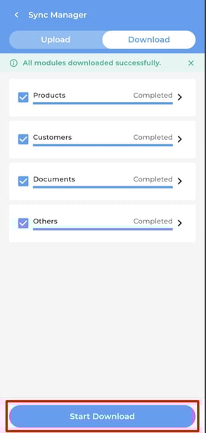 At the Home page, go to Settings > Sync Manager > Download to press the Start Download once.