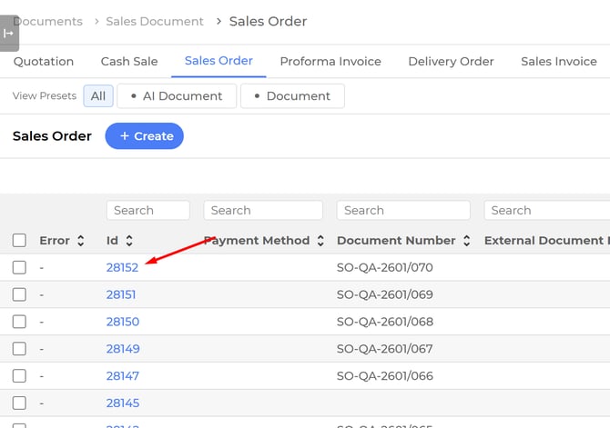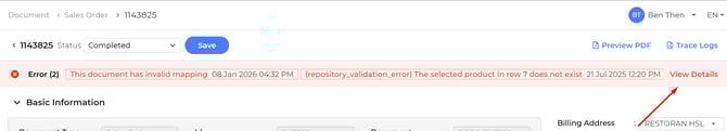 After creating an order, the document number is not showing due to order syncing is not working properly. The possible root cause of order not synced can be due to various factor. Before getting into the root causes, let's go through how to get the correct error message from the document first.